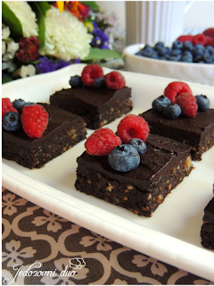 Lješnjake sameljite u blenderu, dodajte očišćene datulje. Usipajte kakao prah i sol pa blendajte da dobijete kompaktnu smjesu. Umiješajte i krupnije nasjeckane lješnjake. Utisnite u kalup obložen papirom za pečenje i stavite u zamrzivač.